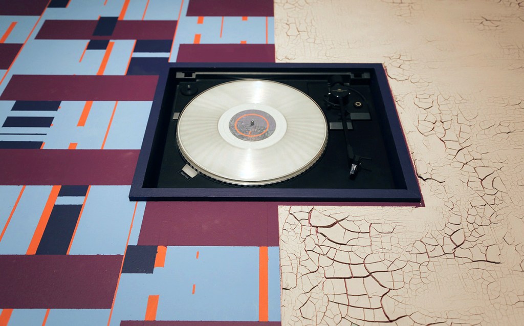 JS-Horseman, Ten Habitable Planets, Clay,Paint, Vinyl Record Performance, Recorded Sound (Synthesizer, Tape Concrete, Voice), 72″x 48″x 24″, ©2017, 2019, 2024