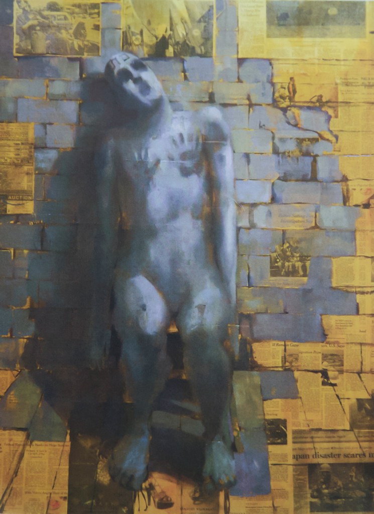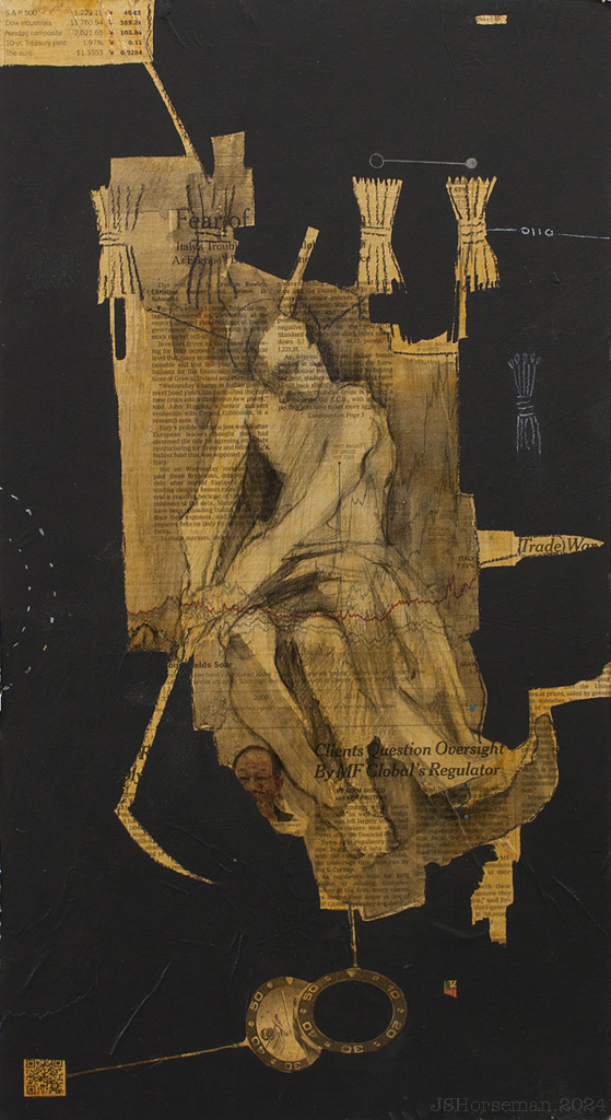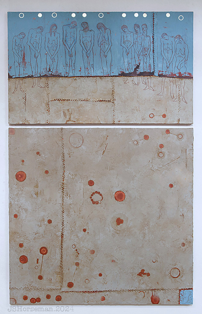 JS-Horseman, Exodus, Oil, Ball Point Pen, Shellac on Paper, 2024